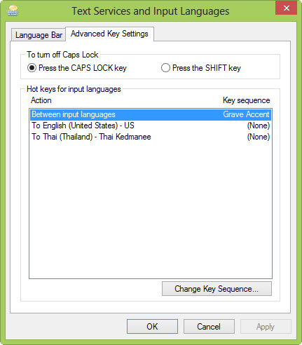 การเปลี่ยนภาษาด้วยสัญลักษณ์รูปตัวหนอน (Grave Key) มีมานานแล้วครับ สำหรับ Windows Xp และ Windows 7 คงจะคล้ายกัน แต่สำหรับ Windows 8 เปลี่ยนไปนิดหน่อยครับ